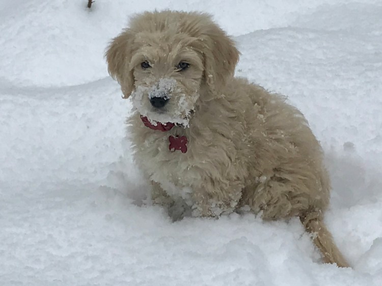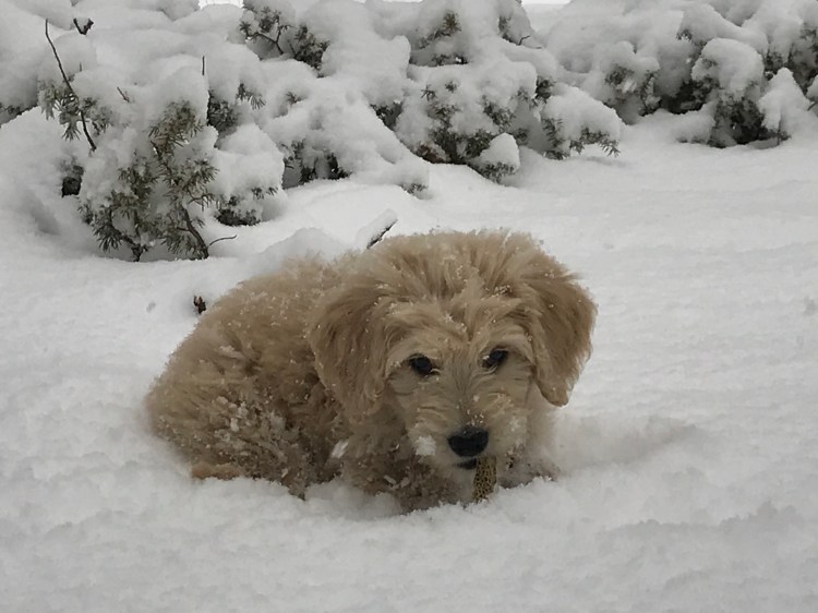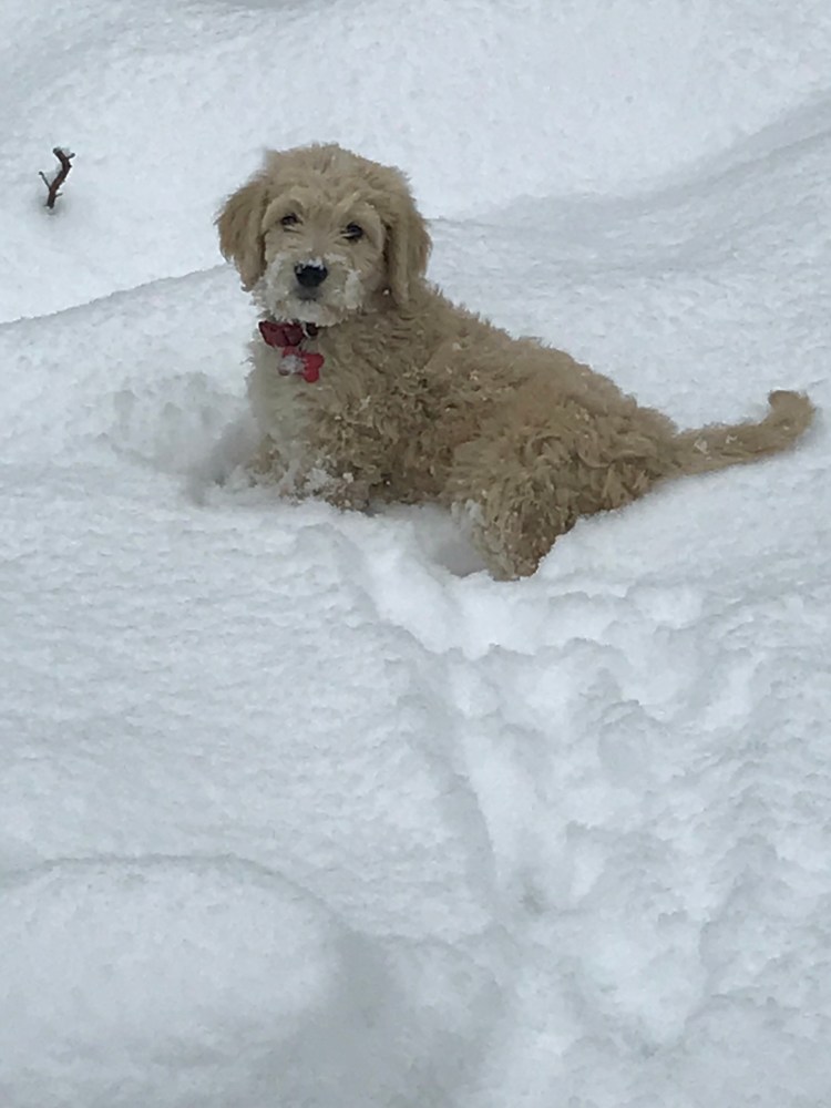 When you’re a puppy and only ten weeks old, everything is a learning experience. Today, with about six inches of snow, Charlie romped and ran making tracks in the forest. Sliding, rolling, and digging joyfully. The only one enjoying it more than Charlie – me watching him. He’s the perfect combination of agile and clumsy; navigating rough terrain at times, and plunging headfirst into snow banks moments later. He truly is poetry in motion.