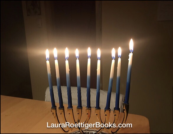 The beauty of all the candles glowing on the eighth night of Chanukah.