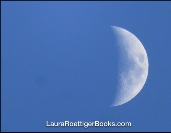 moon rising with still blue sky