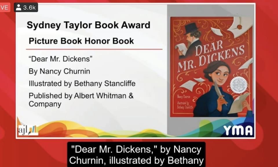 Nancy is generously offering a signed copy of A QUEEN TO THE RESCUE, THE STORY OF HENRIETTA SZOLD, FOUNDER OF HADASSAH and DEAR MR. DICKENS, illustrated by Bethany Stancliffe, winner of the 2021 National Jewish Book Award and the 2022 Sydney Taylor Honor. Comment on the blogpost to be entered.