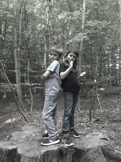 Judith’s children replicating a photo of Judith and her brother when they were young