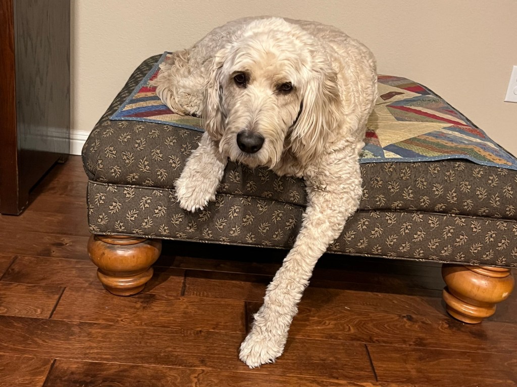 Thanks, Donna! 😊 We had been on the trail for two hours. He saw me come by cleaned up and dressed and put his paw on the floor as if to say, “Are we going somewhere? I’m in!”